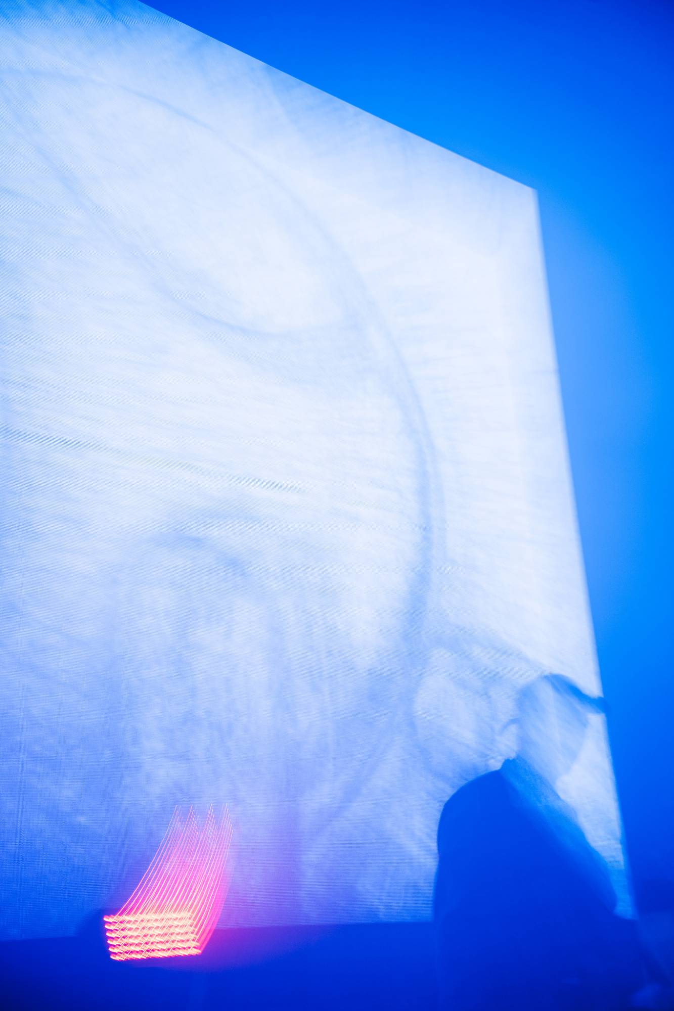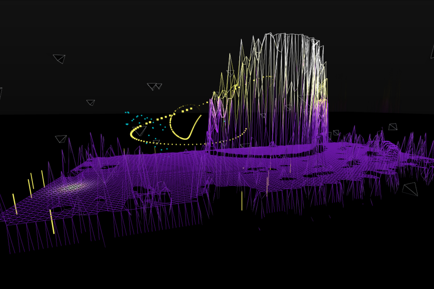 As Lighting Designer and Technical Systems Engineer, Oliver Ellmers was responsible for the real-time integration of the visual and sonic components. Using TouchDesigner, he created a custom interactive control system that ingested 3D spatialised audio composed by Kevin Pollard, and translated it into procedural lighting patterns mapped across the suspended LED canopy. The system analysed live audio streams from the L-Acoustics spatial speaker array, driving both lighting and haptic transducers embedded within the structure to create an enveloping sensory field.