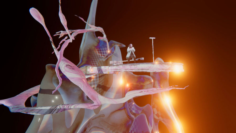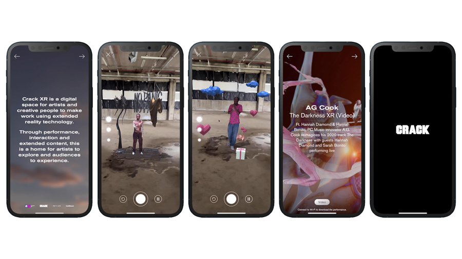 The performances on Crack XR were created in collaboration with Good Measure Studio, Ground Work, and Pretty Lucky, with art direction by Udoma Janssen. The 3D design for Flohio and A.G. Cook’s performances was created by London artist George Jasper Stone.