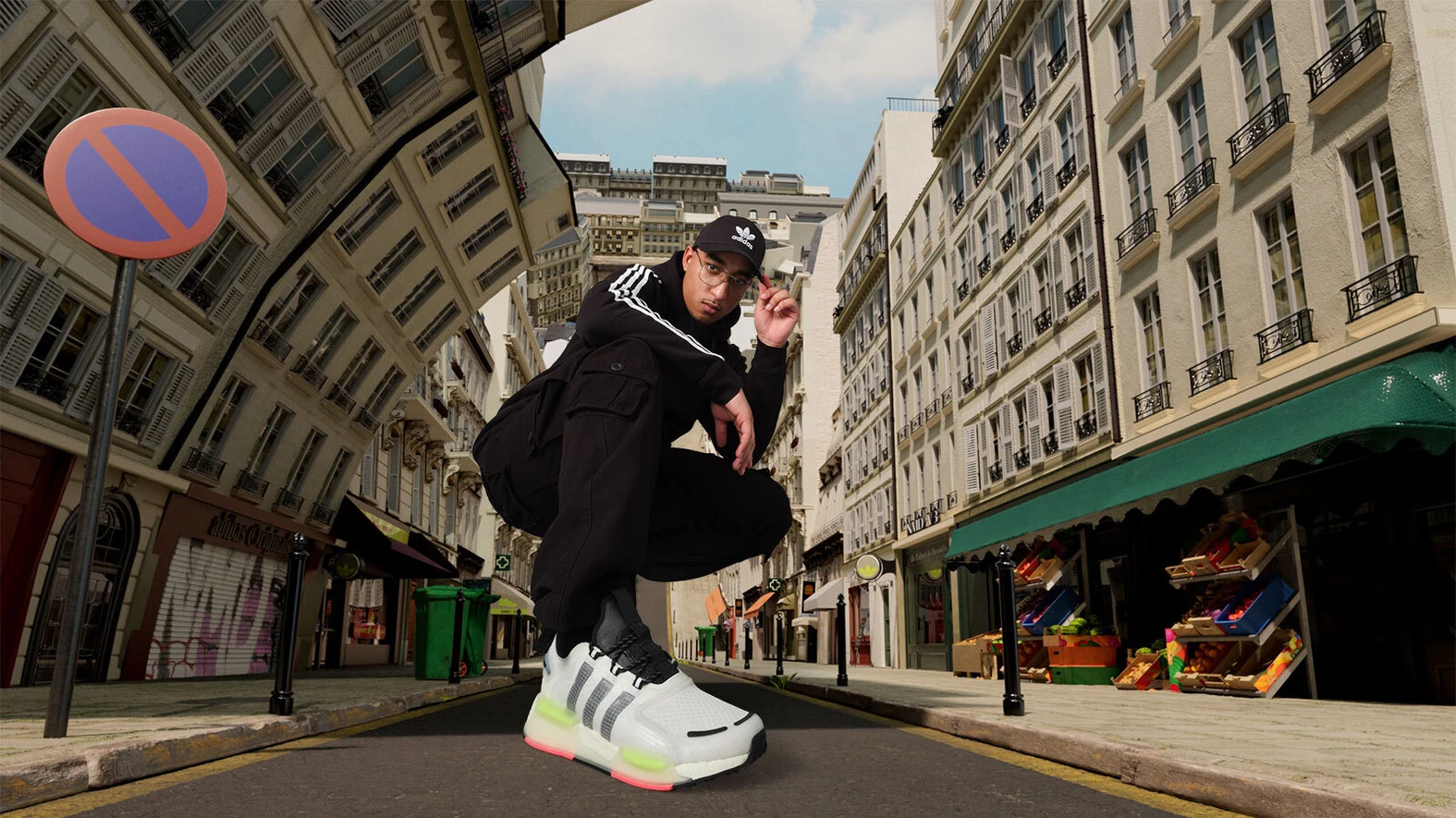 adidas Originals and Foot Locker enlisted three rising European rappers—Nahir from France, Sainté from the UK, and Sacky from Italy—to collaborate on a cypher set in a futuristic cityscape. The musicians perform in a digitally augmented environment, with viewers able to project the cypher around them wherever they tune in. The campaign also features the rappers sporting the new trainers in a digitally distorted version of their home cities, blending fashion and music in a boundary-pushing digital experience.