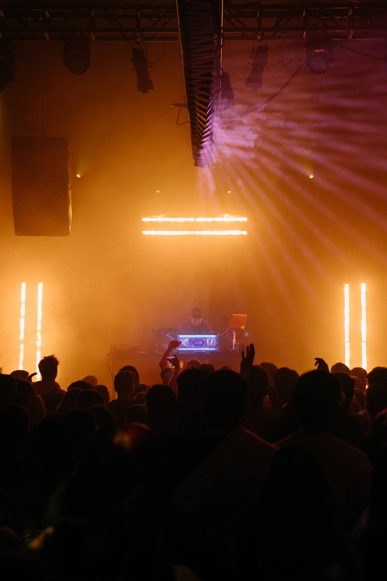 A bespoke communication pipeline was developed between TouchDesigner and the Avolites lighting console, enabling the same live MIDI data that drove the visuals to also control lighting behaviour in real time. This ensured perfect synchronisation between DJ BORING’s live performance, the generative visual content, and stage lighting.