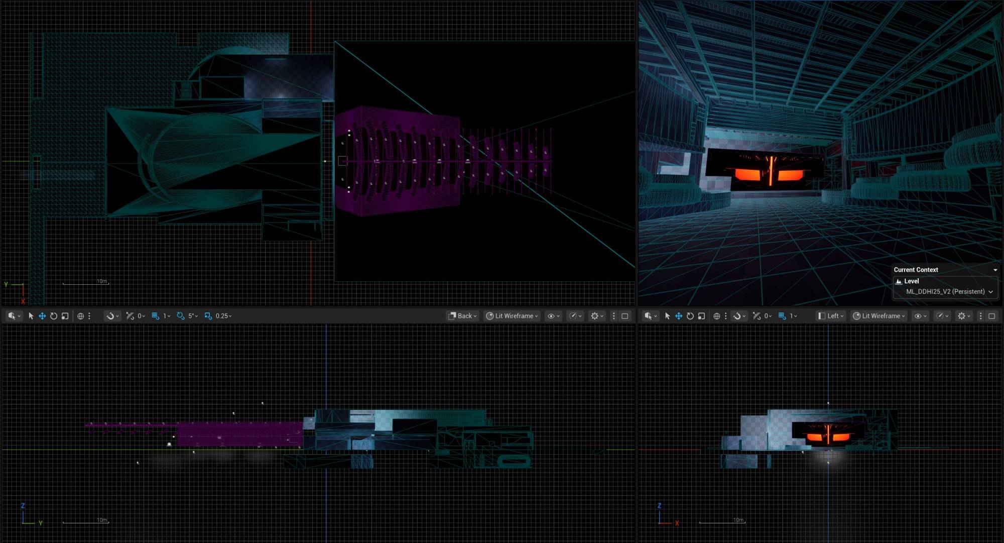 The ABI visualised high-frequency sound data through advanced LED control and real-time data processing techniques. To support design and previsualisation, a high-fidelity digital twin of the installation was developed in Unreal Engine, enabling accurate simulation of lighting behaviour and spatial interaction ahead of on-site deployment.