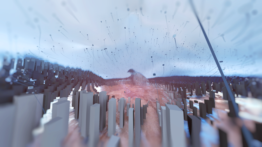 Through a combination of immersive sound design and procedural 3D imagery, the piece places audiences directly within this imagined future. The experience intentionally disrupts familiar perceptions and comfort zones, challenging visitors with its disorienting and otherworldly environment. By immersing them in a surreal and hopeful vision of coexistence with nature, the work opens a space for transformative reflection—shifting perspectives from anxiety about the future toward a sense of deep interconnection with the natural world.