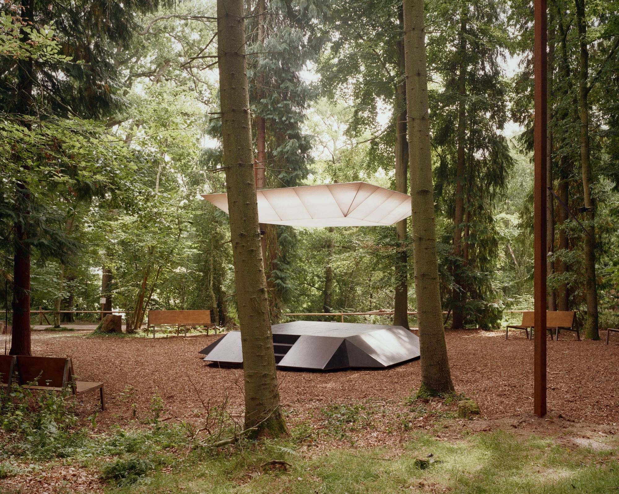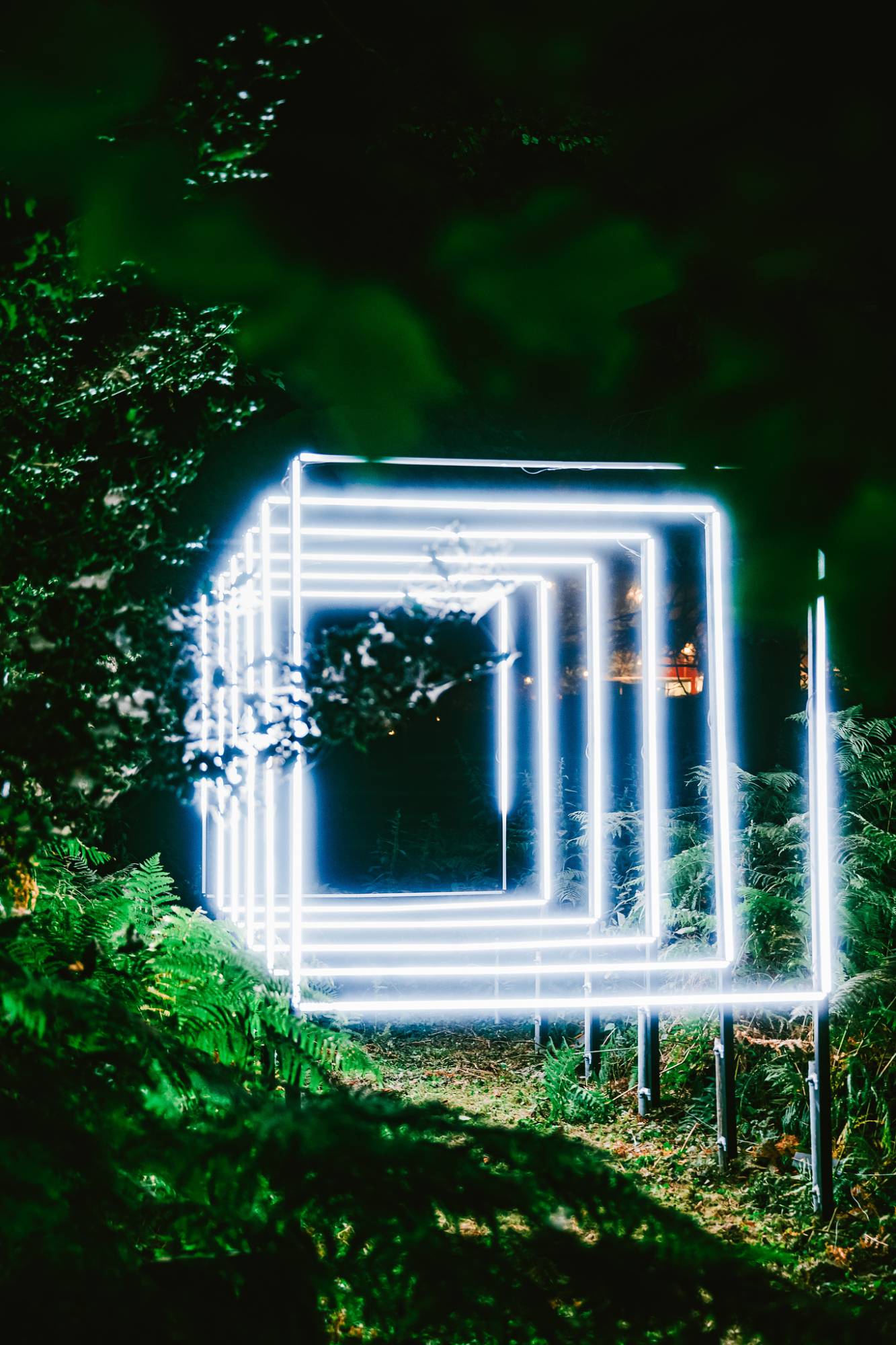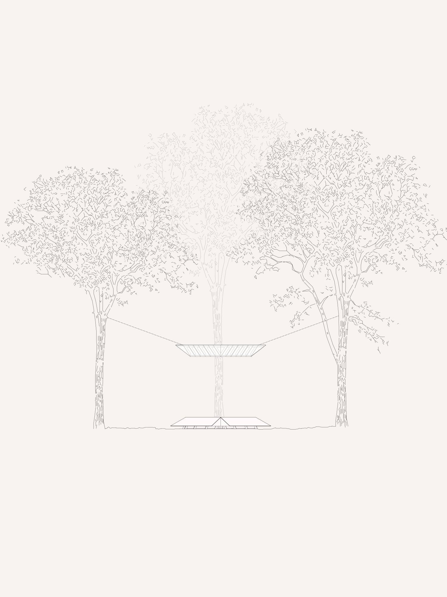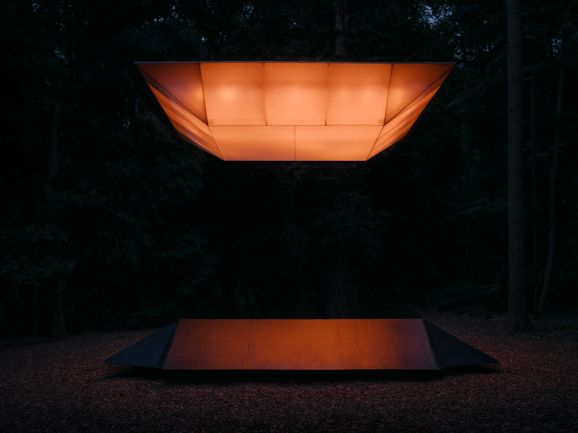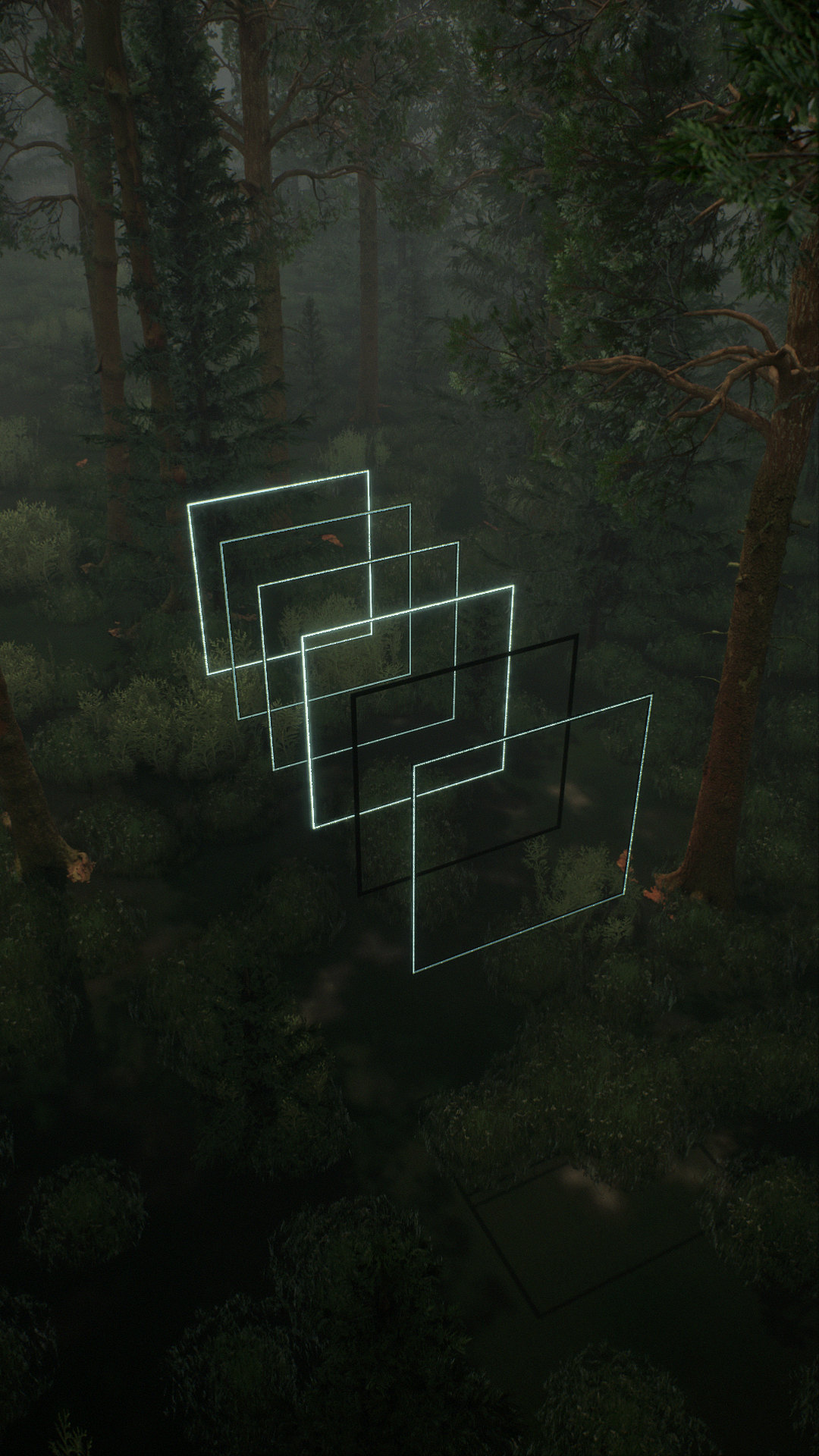 Visitors enter a responsive space where light pulses ripple through the canopy and a multi-channel soundscape moves fluidly around them. Designed to react to environmental data and spatialised sound, the installation reveals the forest’s rhythm through the interplay of light, audio, and physical vibration.