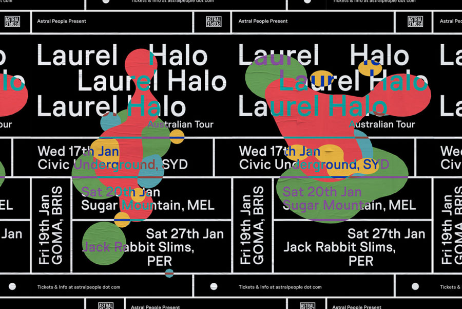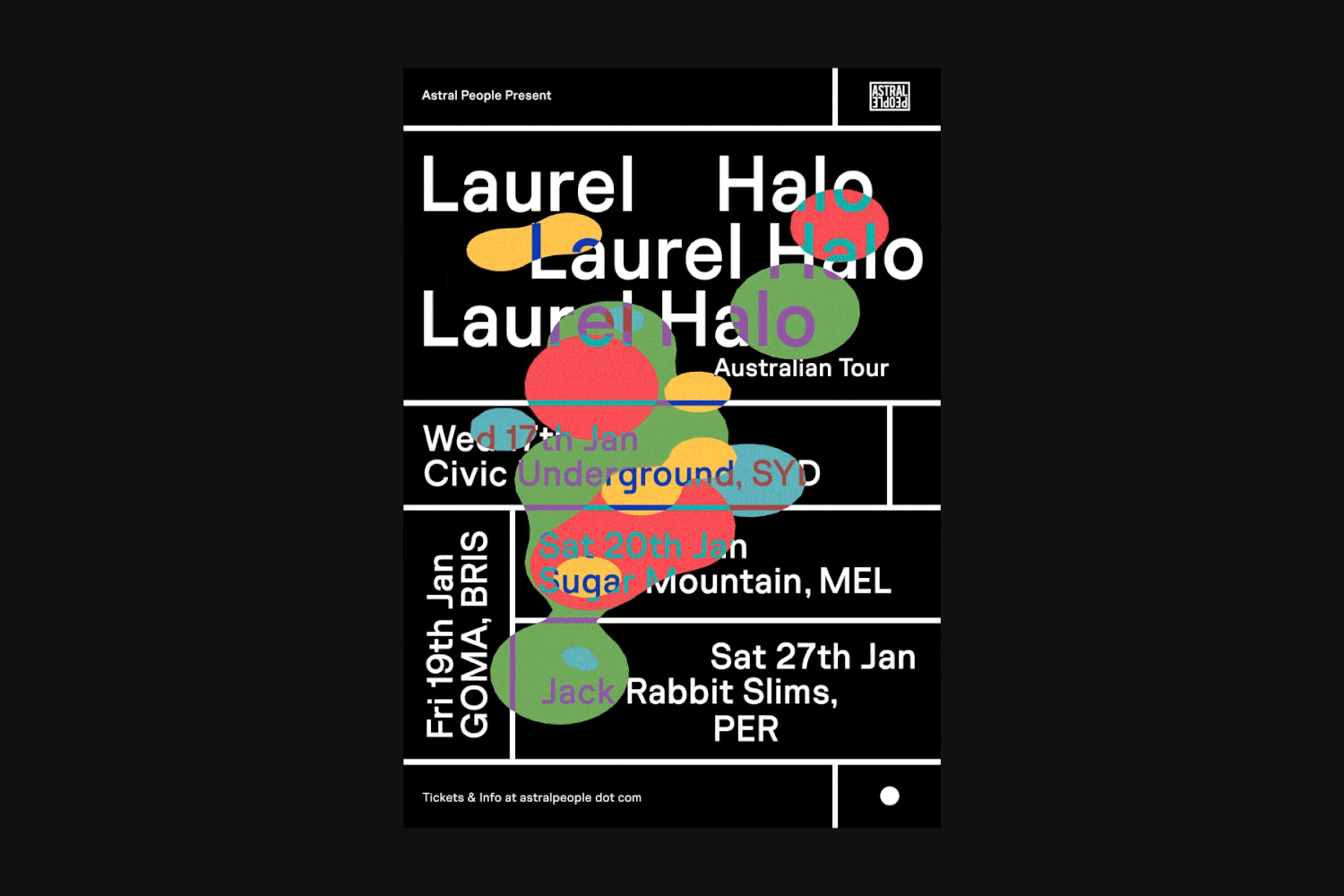 A dynamic poster series for the Laurel Halo Australian Tour 2018, commissioned by Astral People.