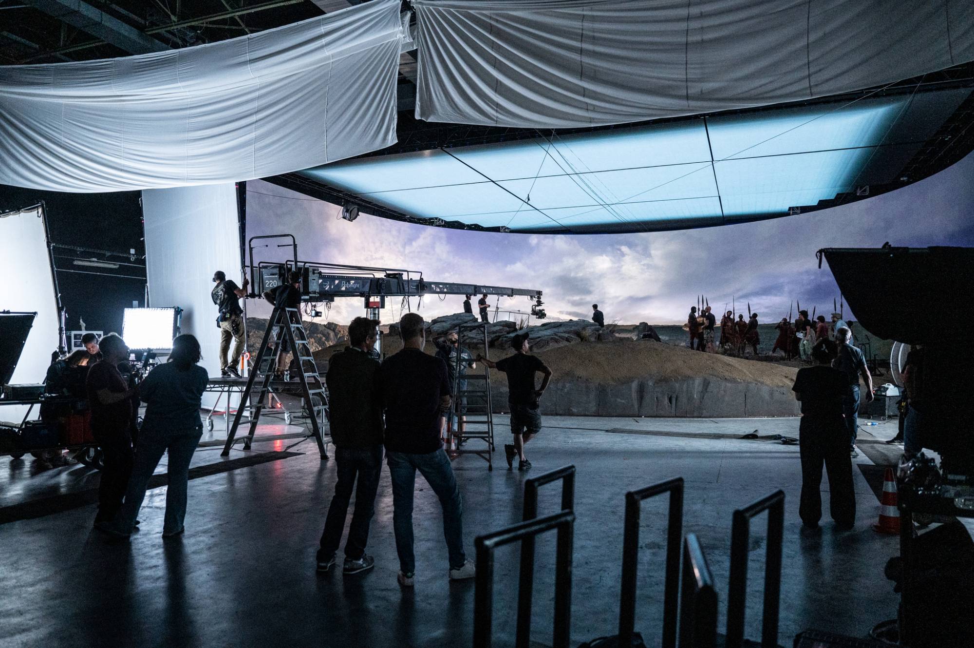 The playback pipeline ran in 16-bit HAP HDR for expanded dynamic range and robust performance. Oliver also integrated a networked OpenColorIO CDL workflow for live in-camera grading, giving the DIT full remote control via OSC from the director’s tent. In addition, he developed a wireless, iPad-controllable light card system for on-set lighting augmentation.
