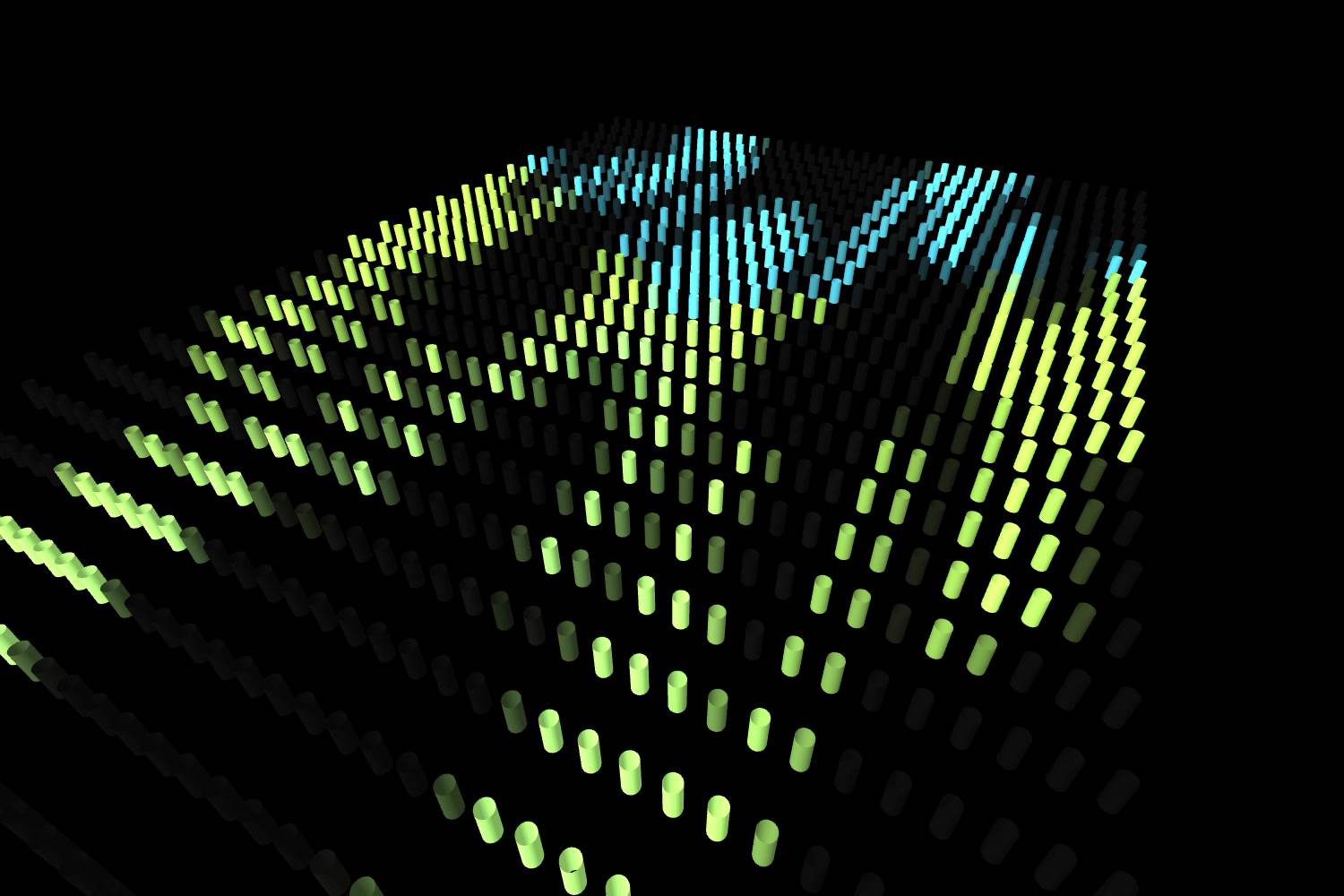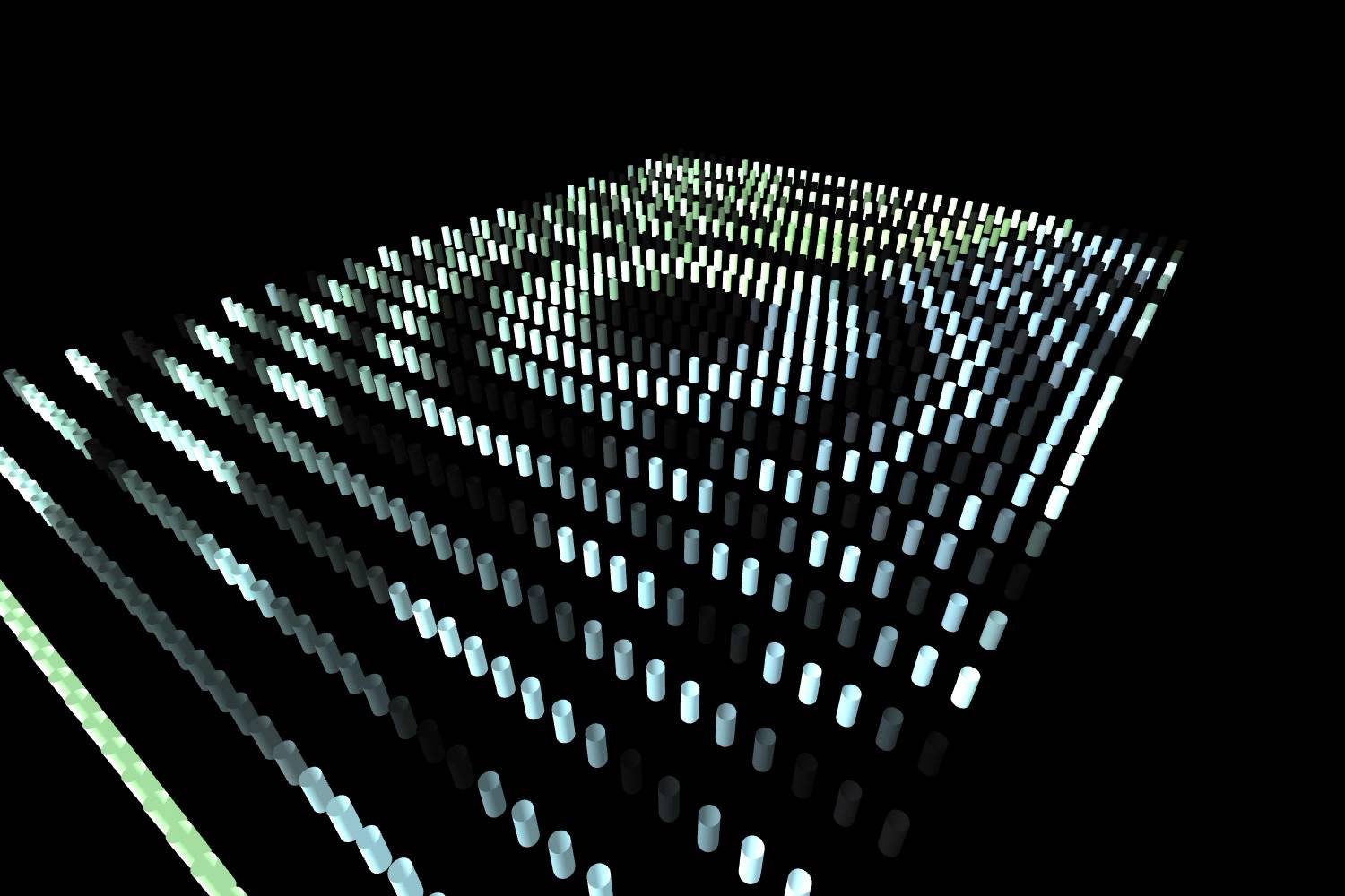 The interactive control system allowed users to bounce, pull, and move balls around a touch device's screen, which illuminated the lights in the DMX matrix. The touch interface was also mapped to a series of sounds, enabling the user to compose musical sequences while interacting with the light matrix.