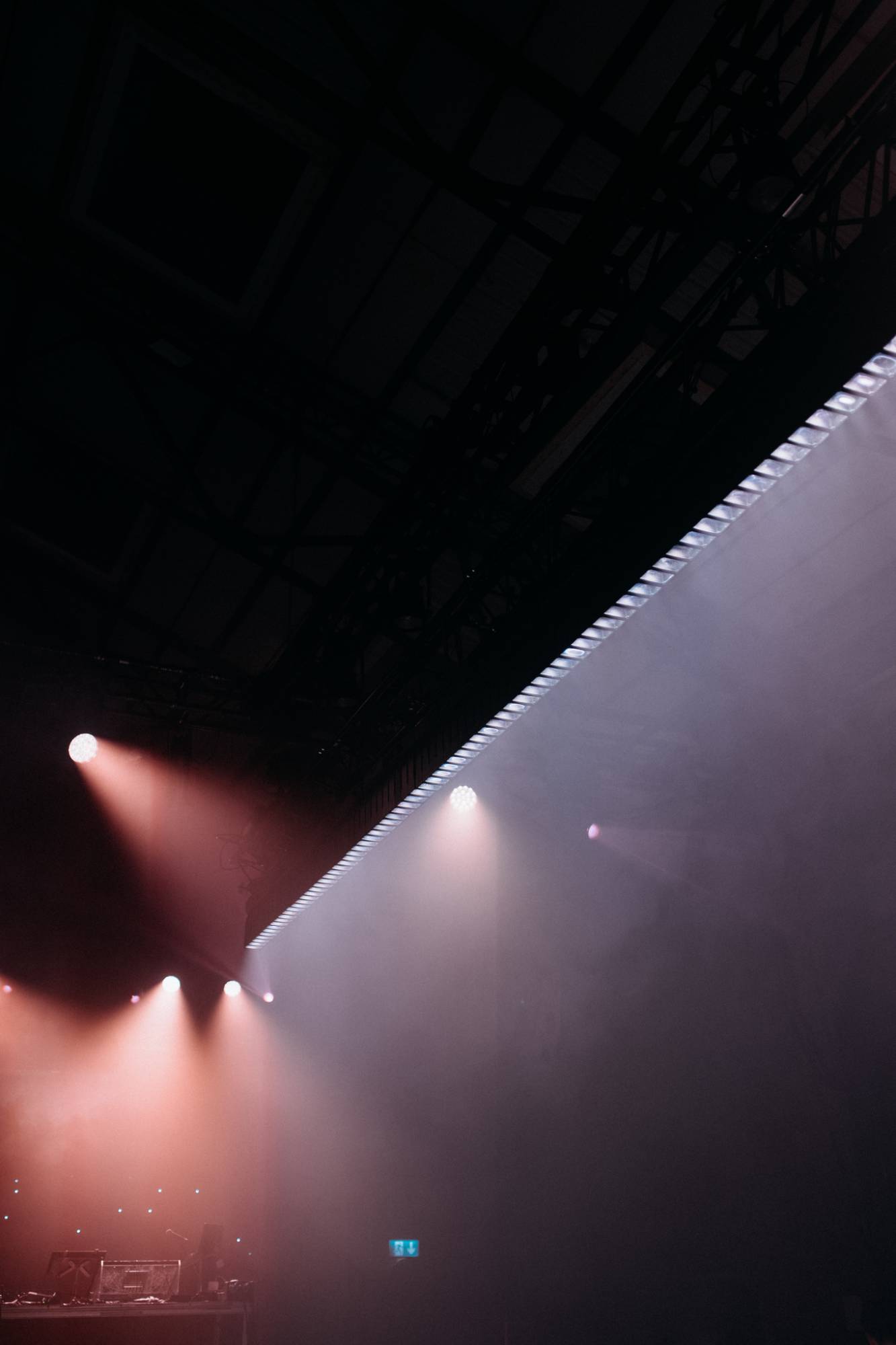 In addition to the video system, Oliver and Hupfau co-created a bespoke lighting installation titled The ABI—a reactive LED sculpture inspired by satellite sensor arrays. Built in TouchDesigner and Ableton, the installation transformed live audio input into generative visuals while simultaneously composing sound arrangements in real time, creating a continuous audio-visual feedback loop.