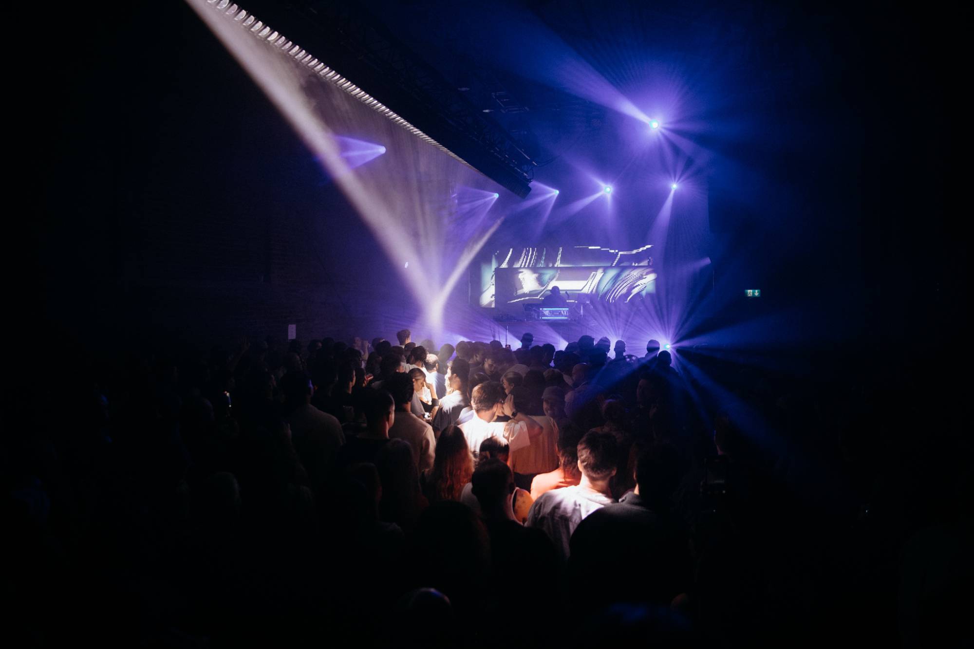 A bespoke communication pipeline was developed between TouchDesigner and the Avolites lighting console, enabling the same live MIDI data that drove the visuals to also control lighting behaviour in real time. This ensured perfect synchronisation between DJ BORING’s live performance, the generative visual content, and stage lighting.