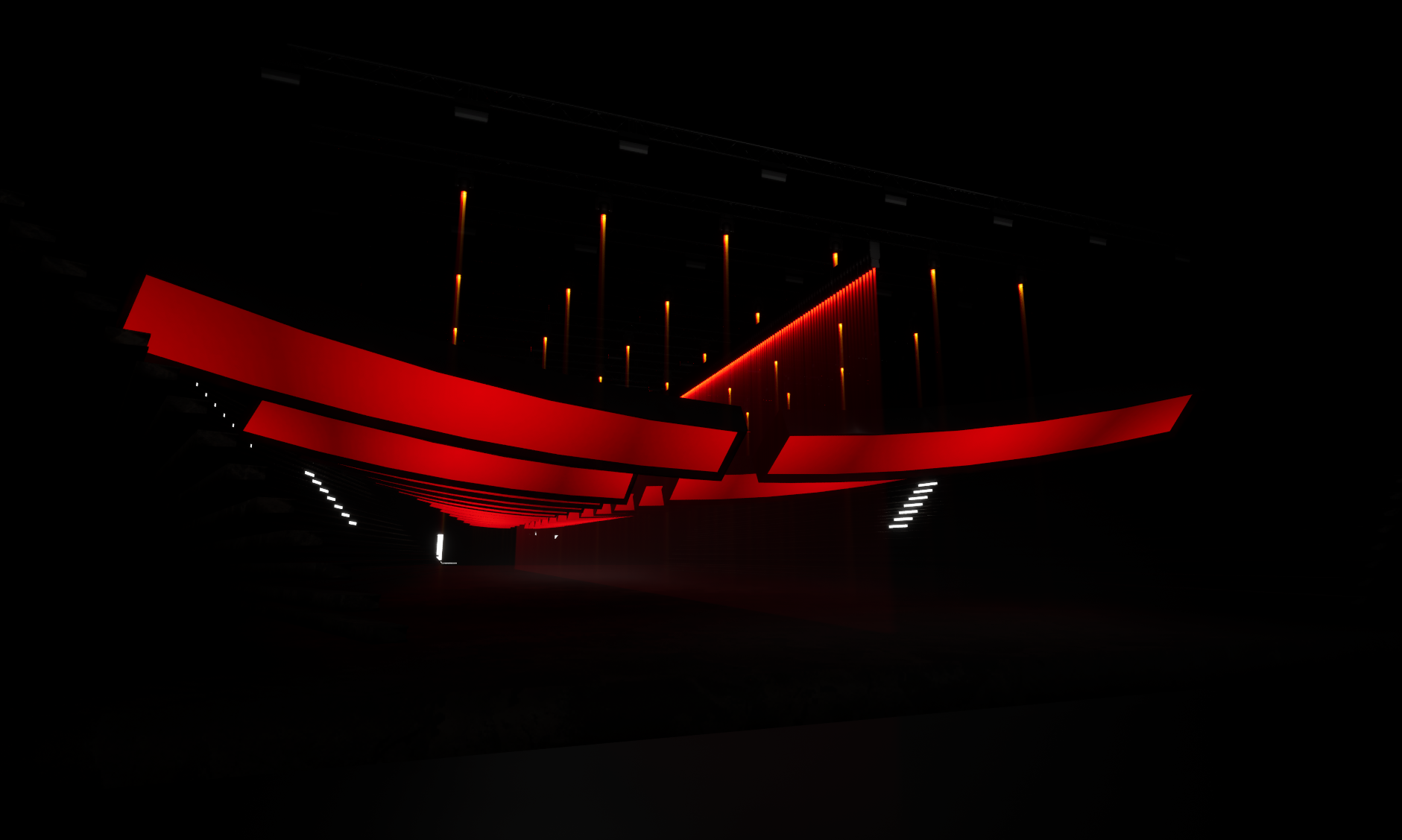 A high-fidelity digital twin of the HERE venue was developed, complete with accurate rigging and truss data. Into this environment, Oliver integrated digital replicas of the venue’s in-house lighting fixtures, including extension lighting and wall-mounted LED strip lights that visually connect the stage to the broader venue architecture. The exceptional visual quality and realism of the real-time rendering blurred the boundary between the physical and virtual—making the transition between them virtually imperceptible.