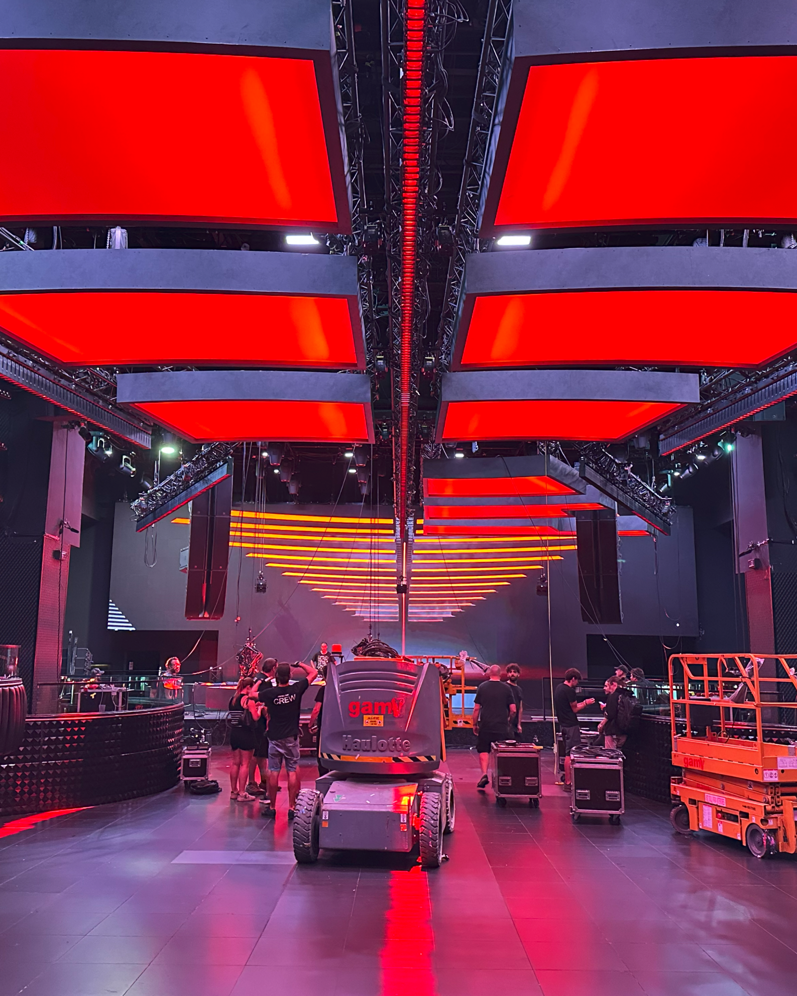 TouchDesigner functioned as the central show control environment, handling real-time audio analysis and signal mapping, procedural lighting generation and pixel mapping, as well as the sequencing and playback of spatial audio created using the L-Acoustics L-ISA system. The platform also managed synchronised Art-Net control, ensuring that light and vibration moved in harmony with the evolving soundscape to create a unified, immersive experience.