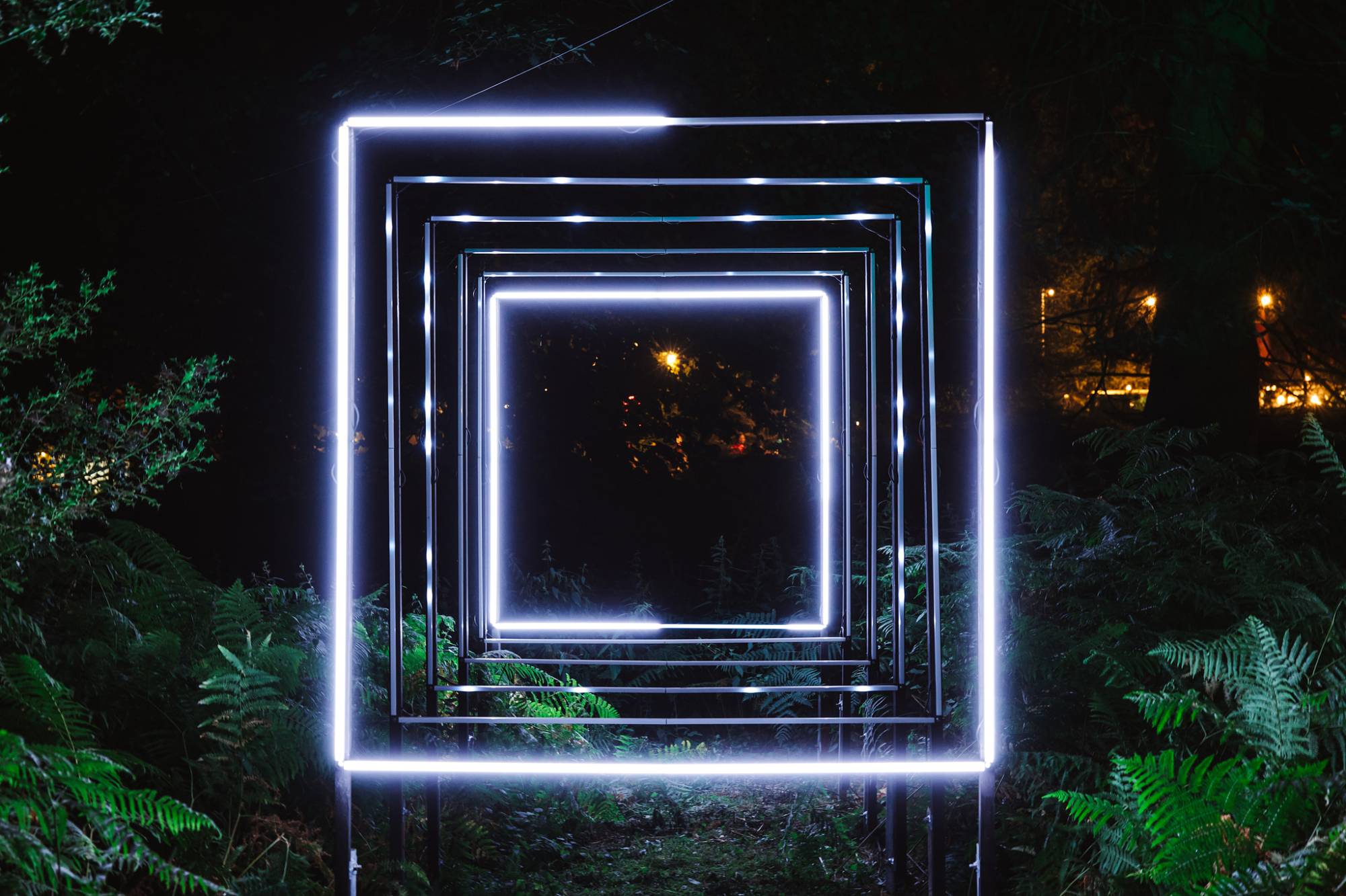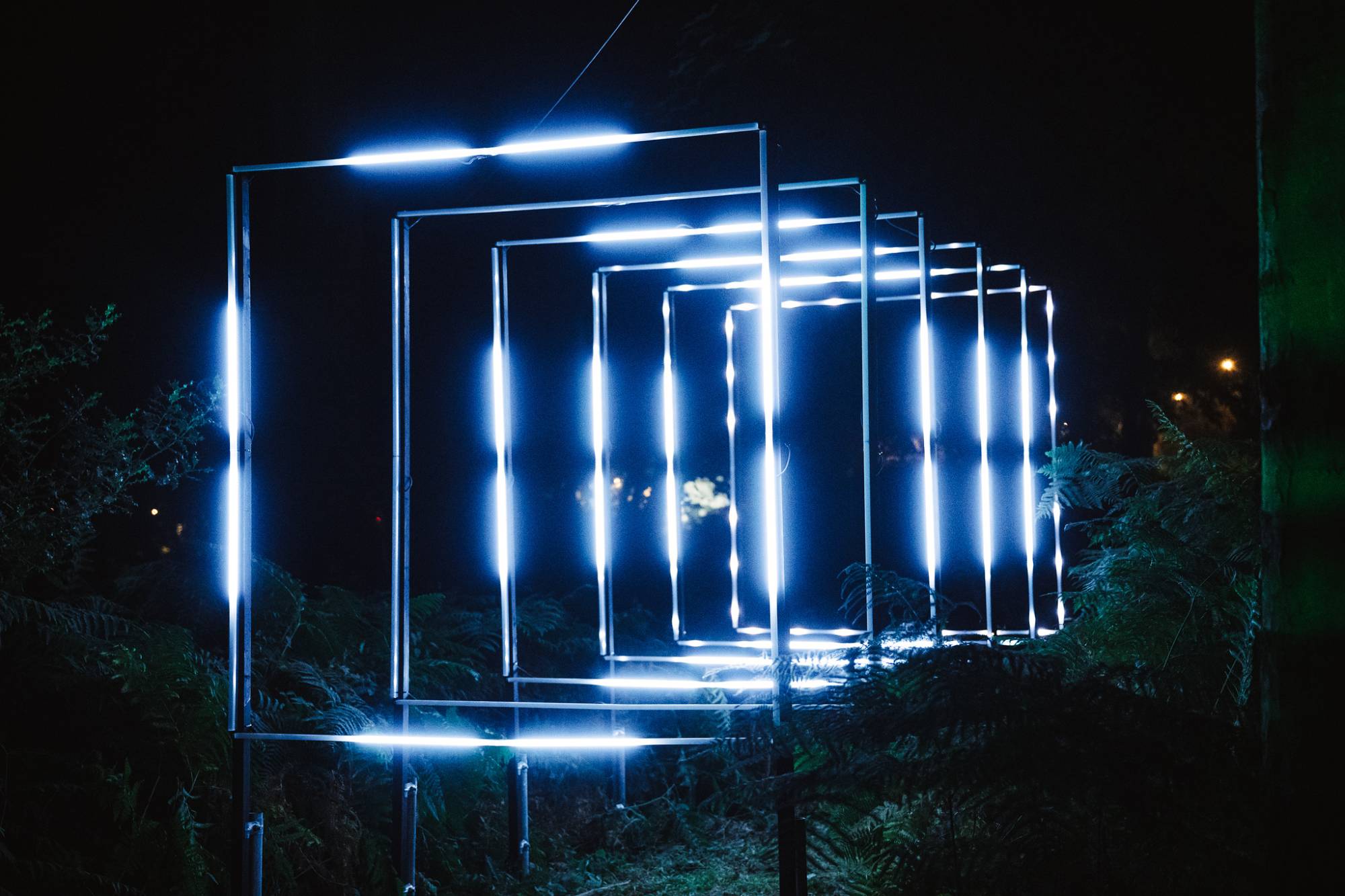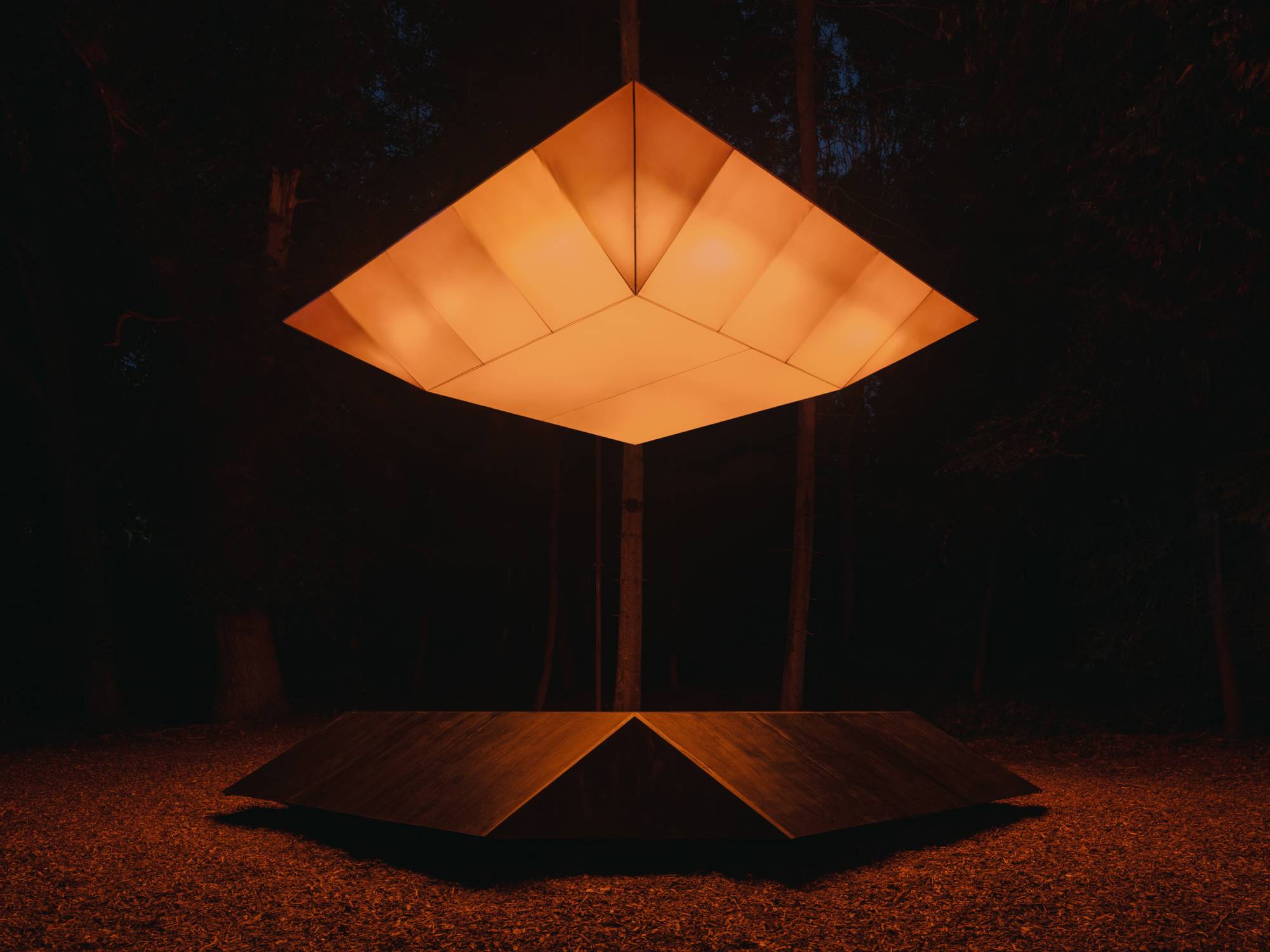 Visitors enter a responsive space where light pulses ripple through the canopy and a multi-channel soundscape moves fluidly around them. Designed to react to environmental data and spatialised sound, the installation reveals the forest’s rhythm through the interplay of light, audio, and physical vibration.