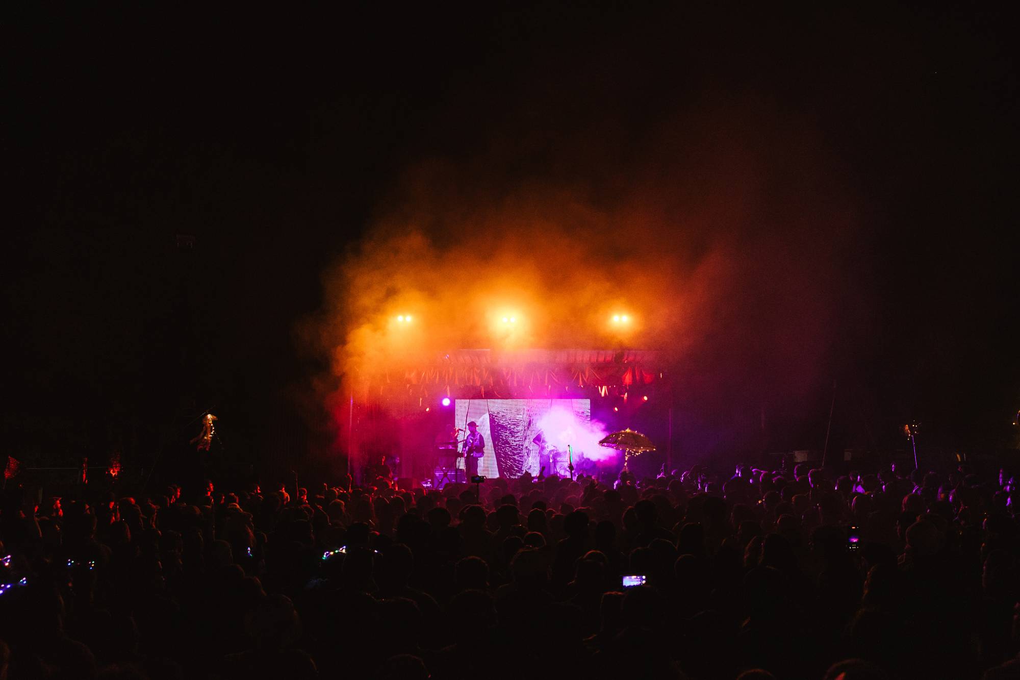 The assets were procedurally generated in TouchDesigner using a bespoke pipeline that ingested video, photography, and scanned artworks from Craig’s personal archive. Hupfau brought these elements to life through 2D animation, which were then composited, treated with generative post effects, and rendered into a diverse visual library. The system automated the entire process—producing a rich catalogue of reactive content for VJs to use across multiple stages during the festival.