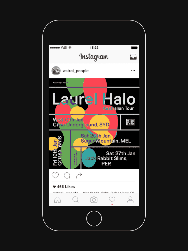 A dynamic poster series for the Laurel Halo Australian Tour 2018, commissioned by Astral People.