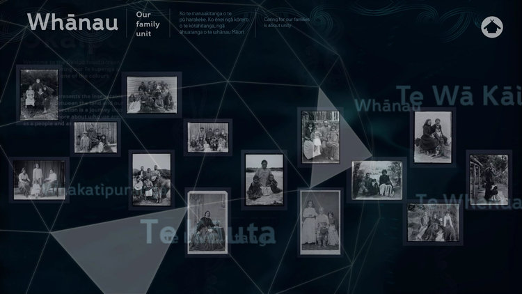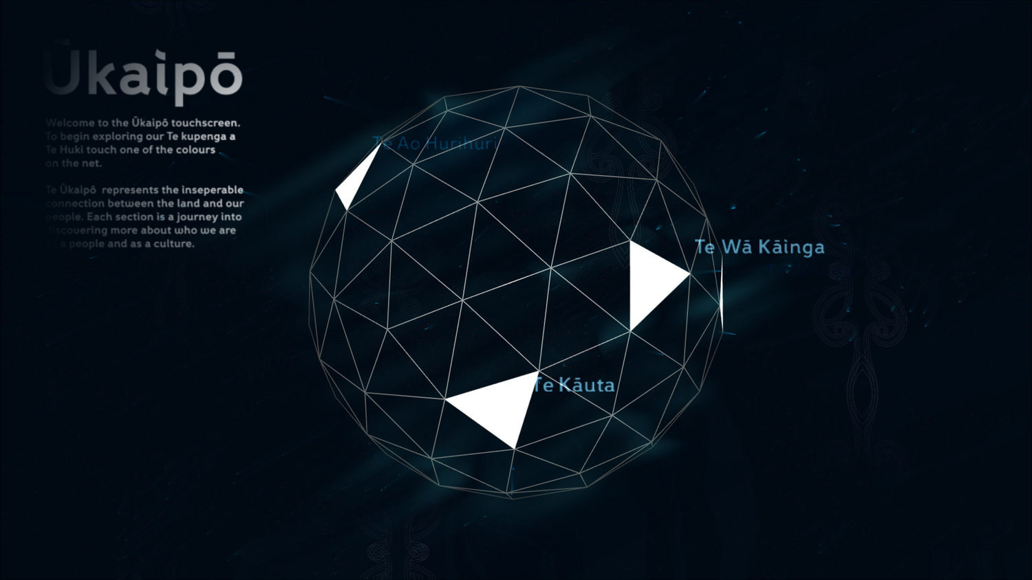 Given the exhibition's focus on the Ruakituri River, the design was informed by the idea of ‘catching’ or ‘gathering’ cultural knowledge within a fishing net. The net itself served as both a navigation system and a map, guiding users through pockets of information held within its grasp.