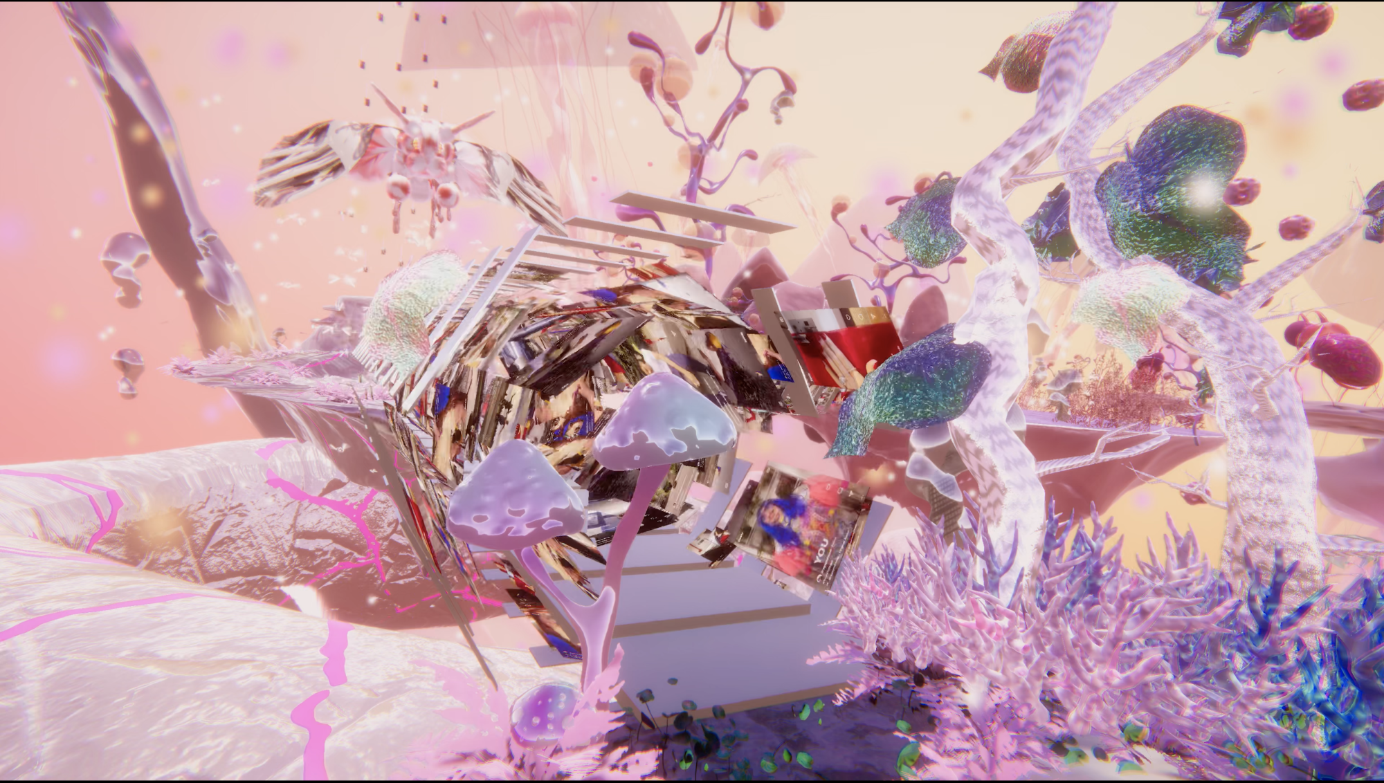 Through a combination of immersive sound design and procedural 3D imagery, the piece places audiences directly within this imagined future. The experience intentionally disrupts familiar perceptions and comfort zones, challenging visitors with its disorienting and otherworldly environment. By immersing them in a surreal and hopeful vision of coexistence with nature, the work opens a space for transformative reflection—shifting perspectives from anxiety about the future toward a sense of deep interconnection with the natural world.